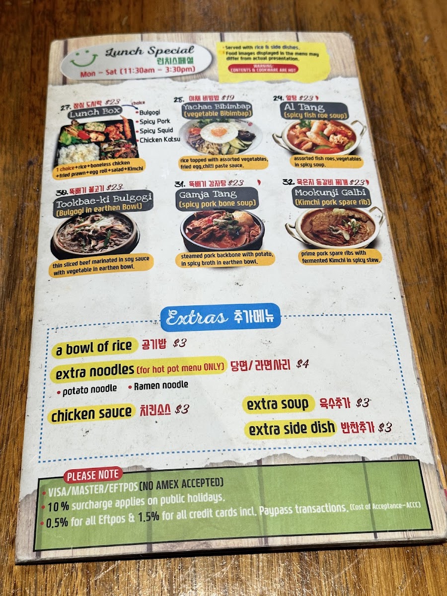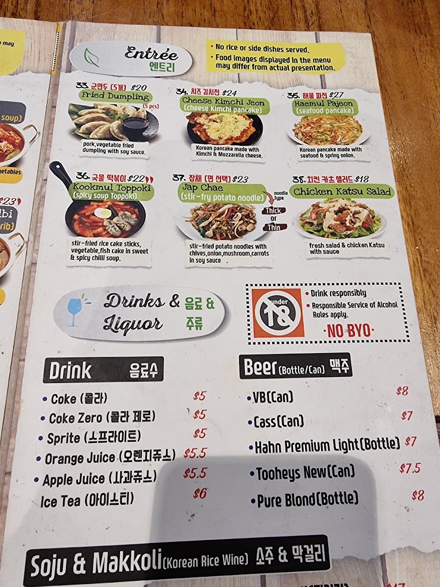 Nestled at 3/116-120 Liverpool St, Sydney NSW 2000, The Sparrow's Mill invites you to explore a culinary journey like no other with a menu that celebrates the rich and vibrant tastes of Korean cuisine. From the delightful Bulgogi Dolsol Bibimbap to the comforting Soft Tofu Stew Soondubu, every dish is crafted to ignite your taste buds. Don't miss out on our sizzling Tookbae-Ki Bulgogi and the savory Seafood Pancake, perfect for sharing with friends. For those seeking a bold kick, the Spicy Soup Toppoki and Spicy Chicken Wings are sure to deliver a thrill. Pair your meal with a refreshing Peach Soju or our selection of craft beers for the perfect dining experience. Let the flavorful offerings of The Sparrow's Mill Menu take you on an unforgettable gastronomic adventure!